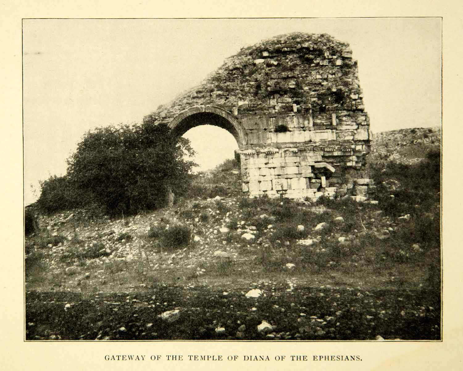 This is an original 1903 monochrome halftone print that depicts the gateway to the temple of Diana of the Ephesians.