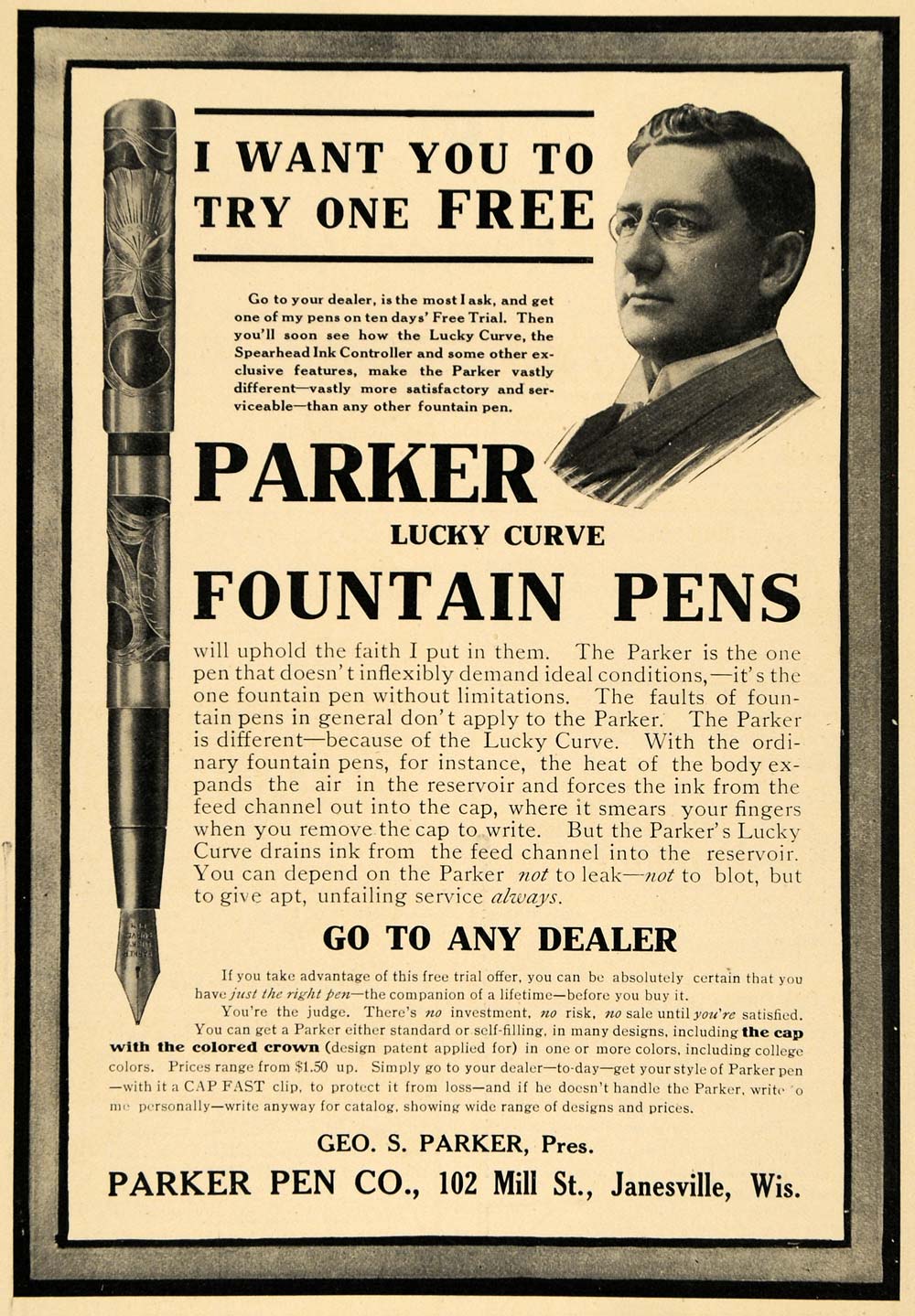 1908 Ad Parker’s Lucky Curve Fountain Pen Janesville WI – ORIGINAL TW1 Buy Cheap Extremely
