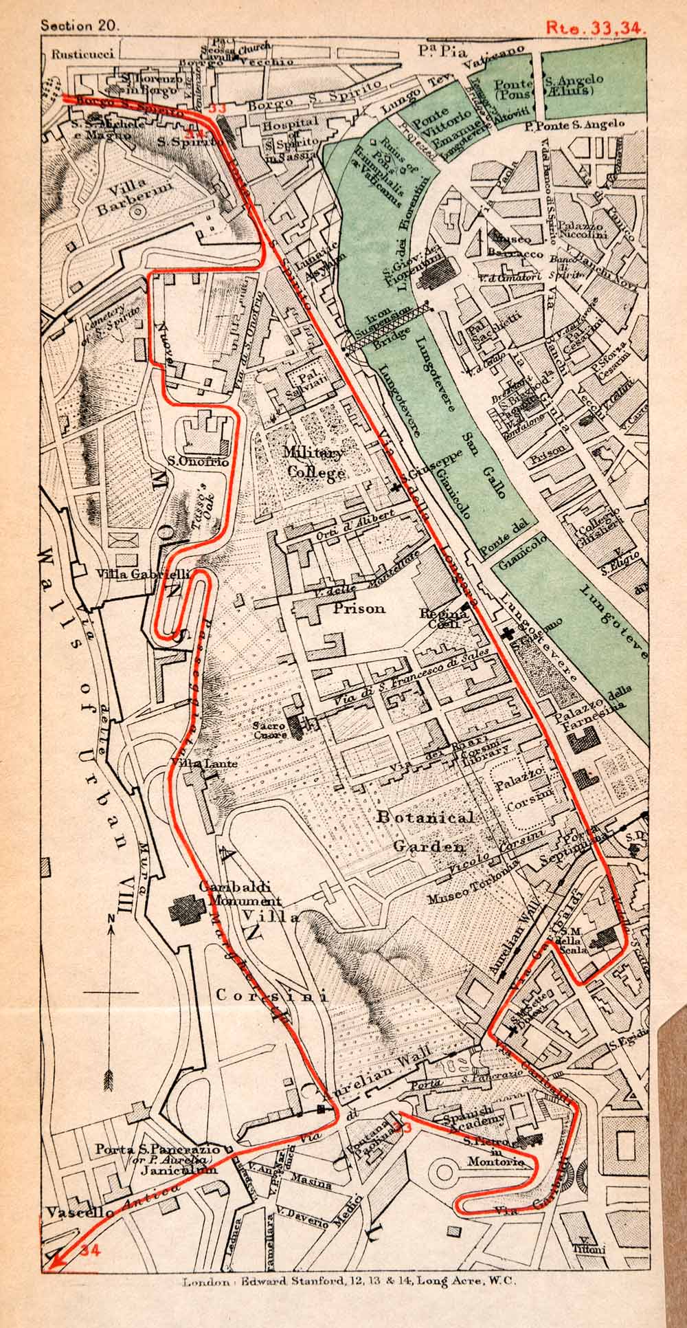 1908 Lithograph Map Rome Botanical Garden Tiber River Prison Villa XGJA5 Discount Latest Collections