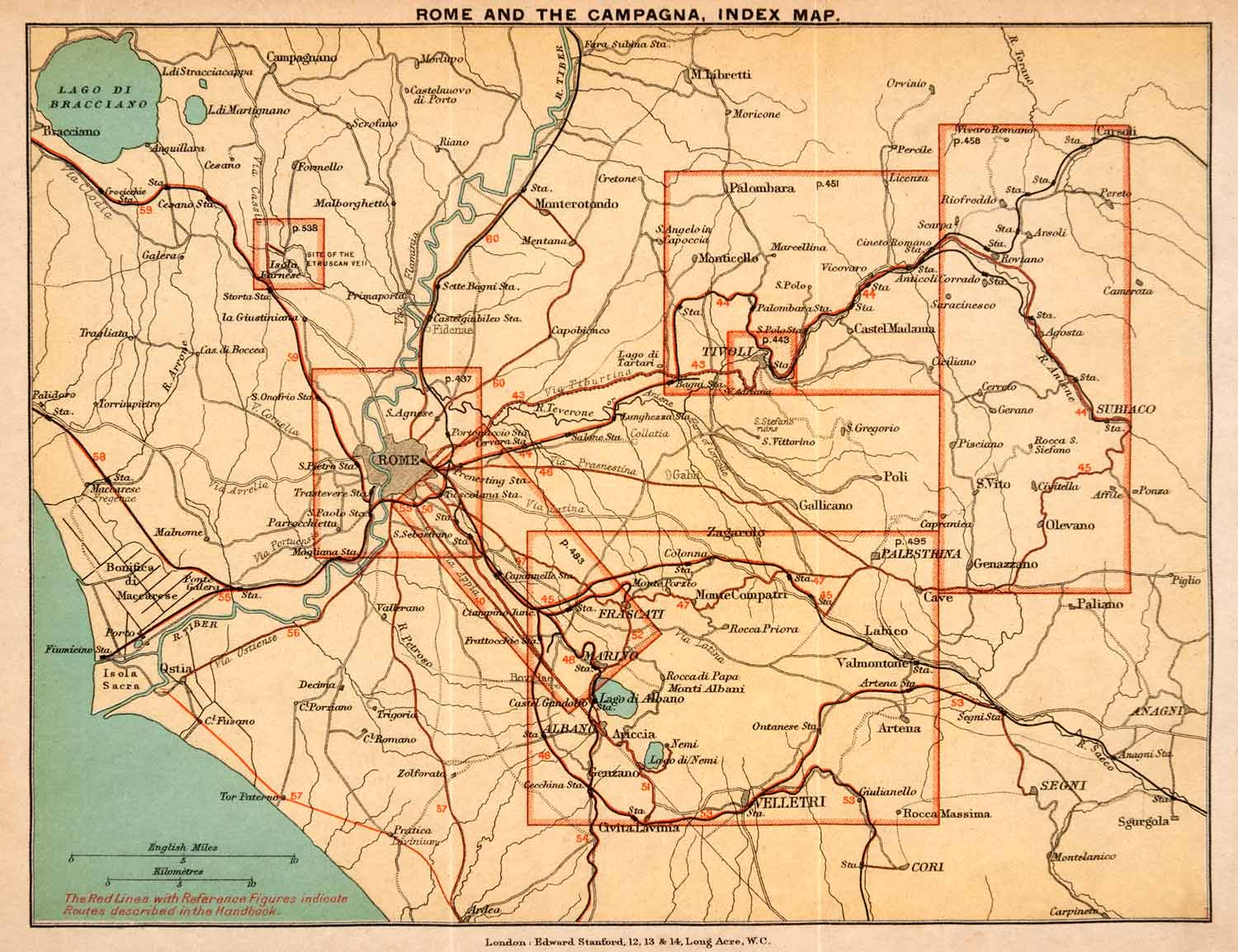 1908 Lithograph Rome Italy Map Tivoli Isola Subiaco Velletri TIber XGJA5 Best Sale Online