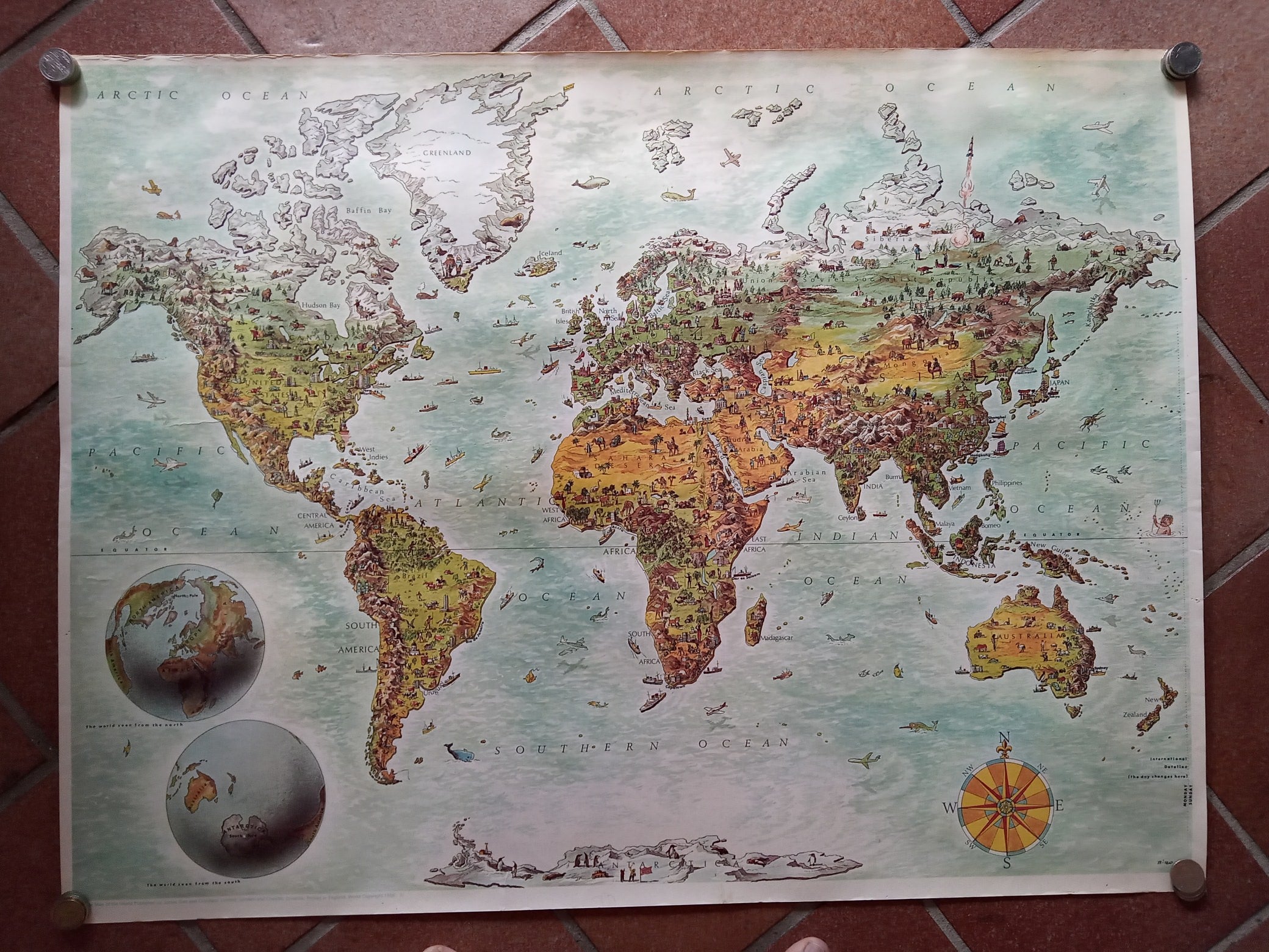 Rare 1966 Pictorial World Map Poster by Biro