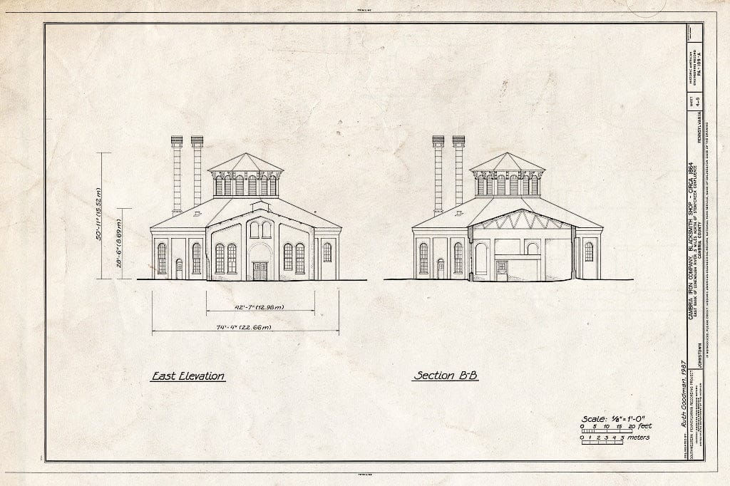 Blueprint HAER PA,11-JOTO,135A- (Sheet 4 of 5) – Cambria Iron Company, Blacksmith Shop, Lower Works, Johnstown, Cambria County, PA Cheap Low Shipping