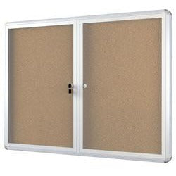 Bi-Office Anodized Aluminum Frame Enclosed Cork Bulletin Board, 2 Doors, 36”H x 48”W
