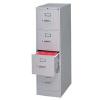 Commercial-grade vertical file features two high-sided drawers that accommodate letter-size, hanging file folders without additional accessories. Slide suspension allows maximum drawer extension. Steel ball bearings provide smooth, quiet drawer performance. Even fully loaded, these drawers open with ease. Adjustable wire followers keep files upright. 26-1/2″ deep vertical file also features a core-removable lock for security, aluminum label holders for easy referencing, convenient pull handles and heavy-gauge steel construction with recycled content. Vertical file meets or exceeds ANSI/BIFMA industry standards.